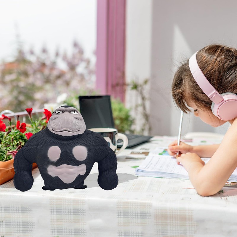 Black Stretchy Monkey Toy,12.5 x11.5cm Squishy Monkey Stress Toy,Stress Relief Gorilla Toy Fidget Stretch Monkey Toy Decompress Gorilla Toy for Kids and Adults Orangutan Stress Toys for Birthday Gift