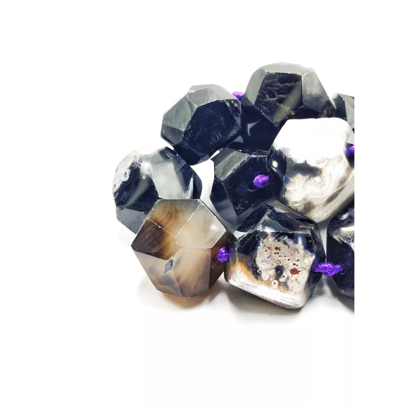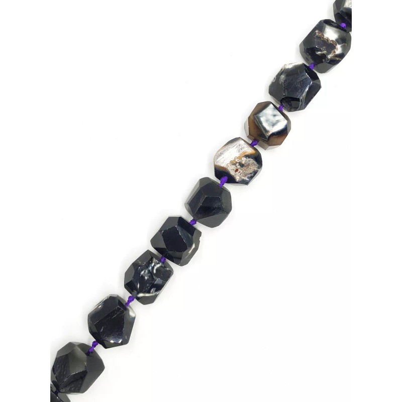 Black Stripe Agate With Purple Matrix Faceted Chunk Size 15-25mm 15.5" Strand