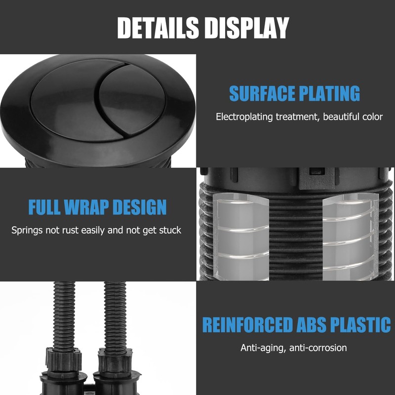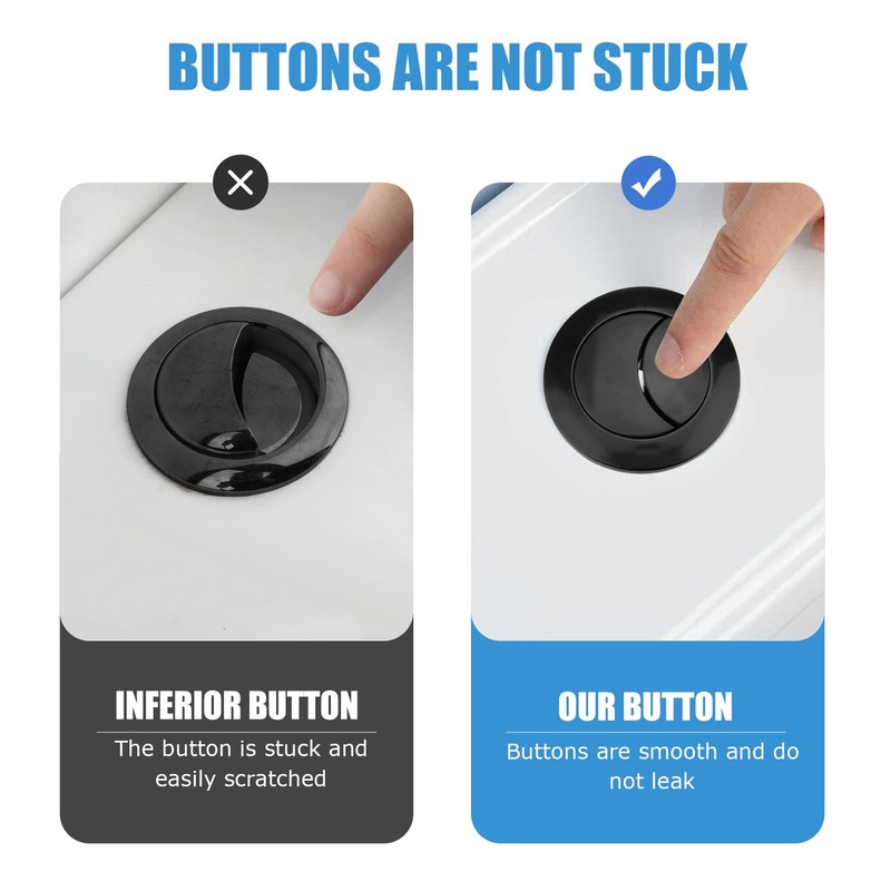 • STYLISH BLACK FINISH: The all-black design of our toilet push button flush is perfect for any bathroom decor, adding a touch of elegance and sophistication.