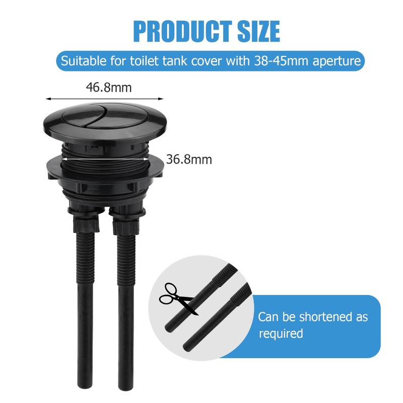 • UNIVERSAL COMPATIBILITY: With a diameter of 38mm-43mm, our flush toilet button is compatible with most dual flush toilets. Please check your toilet lid hole size before ordering.