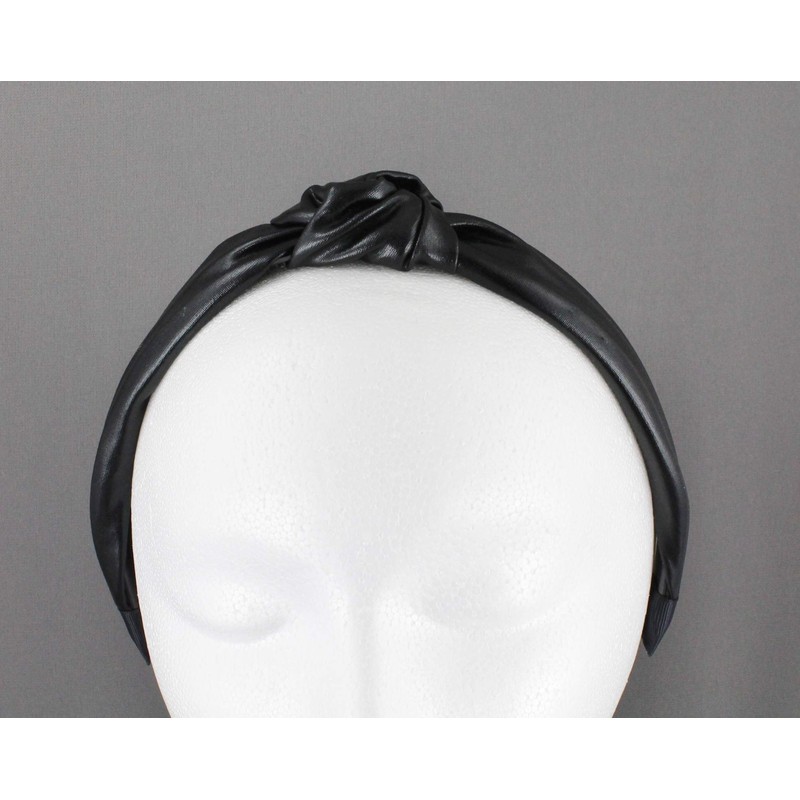 Black turban knot headband shiny lamé fabric covered grip teeth lame shiny fabric turband 7/8 inch wide base headband
