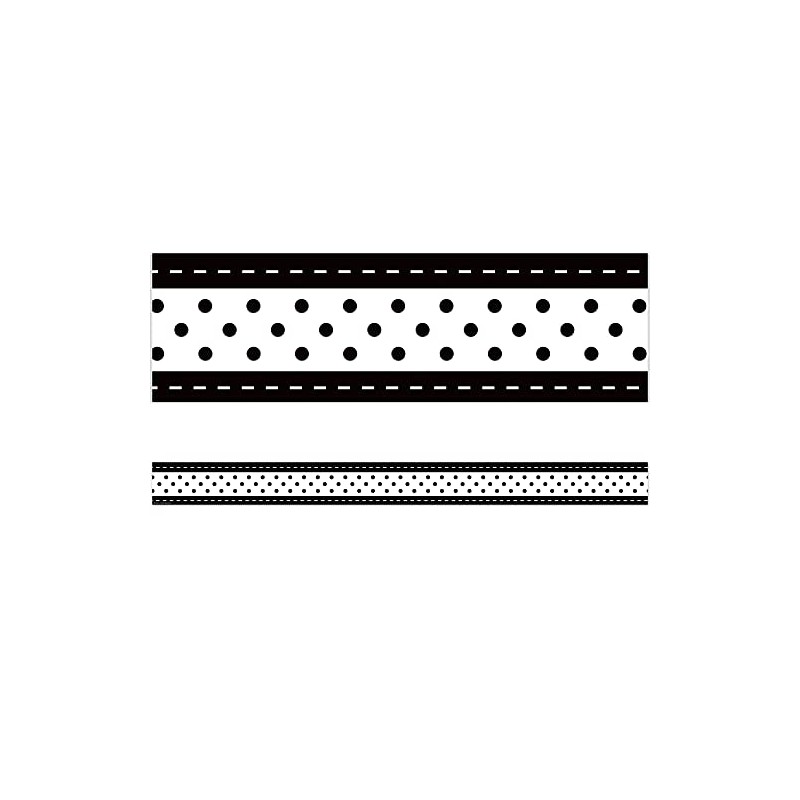 Black & White Stitch 'n' Dots Straight Border Trim