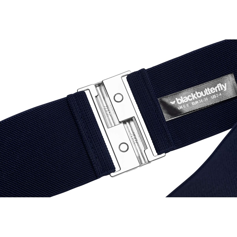 BlackButterfly Wide Elastic Waist Cinch Stretch Waistband Retro Vertical Clasp Buckle Belt (Midnight Blue, L)