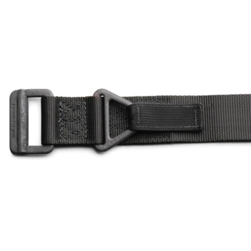 BLACKHAWK!'s CQB/Rigger's Belt offers parachute grade buckles and adapters, 1.75” webbing (7,000 lb tensile strength), and includes a hook and loop that secures running end. The belt is offered in four colors: Coyote Tan, Desert Sand Brown, Black and Olive Drab. the belt is measured from the buckle where it attaches to the belt, to the angled tip of the belt, it should measure about 3 to 4 inches longer that the advertised length.