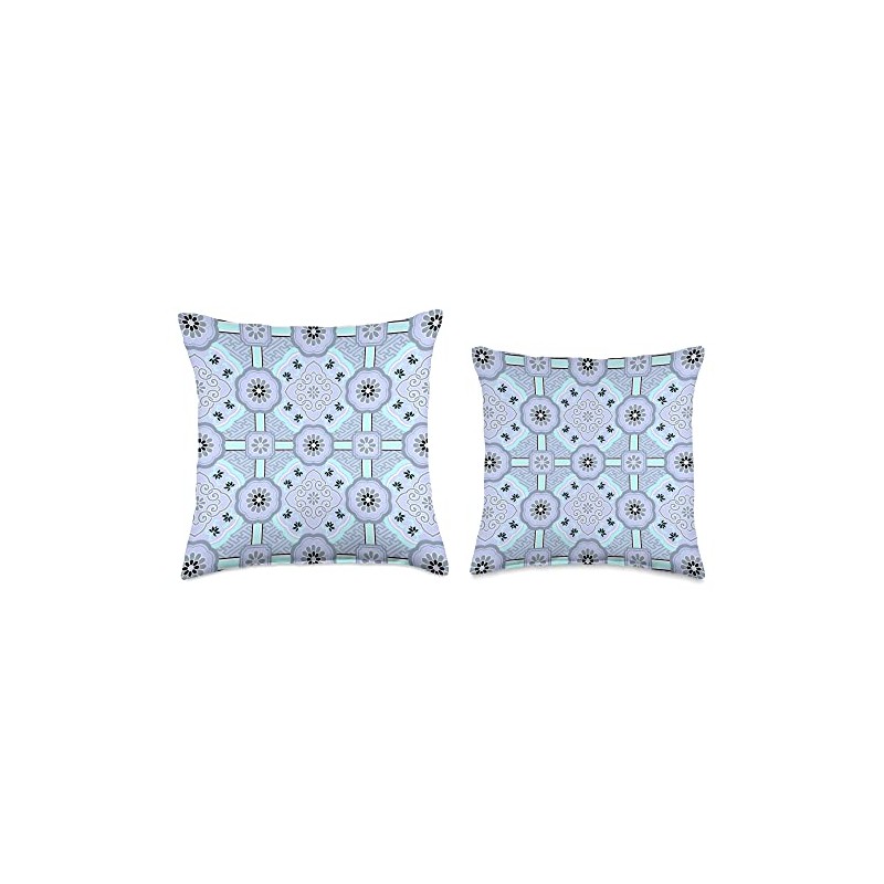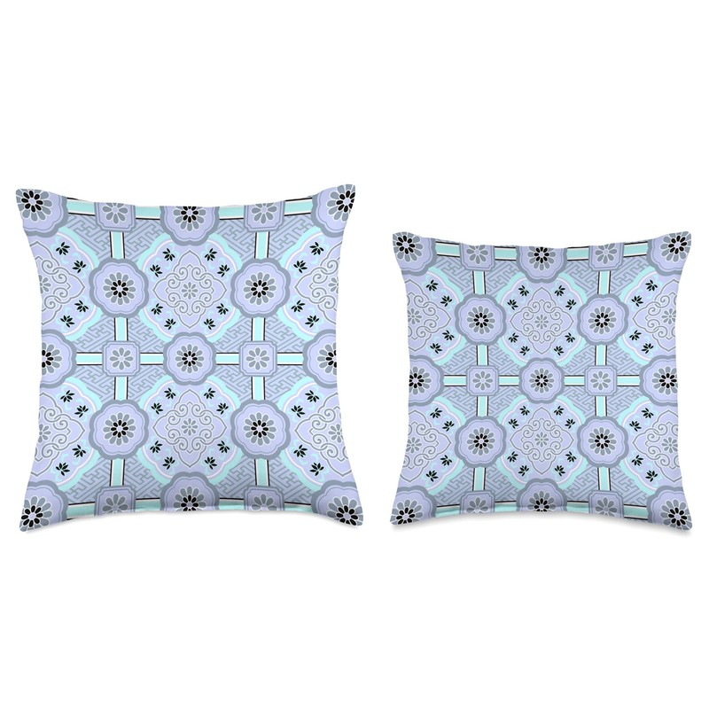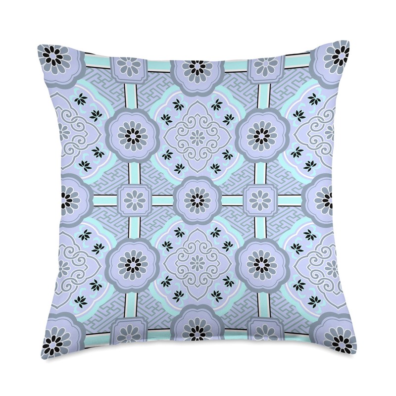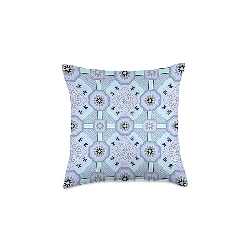 Blacklinesw9 Pale Blue Oriental Pattern with kiku and sayagata Throw Pillow, ...