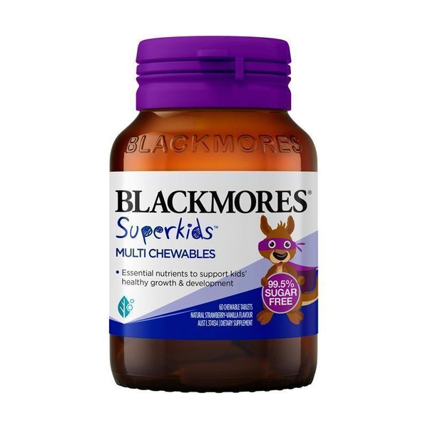 Blackmores Superkids™ Multi Chewables are a 99.5% sugar-free formulation containing a daily of essential nutrients specifically formulated to help support kids’ healthy growth and development. This naturally delicious strawberry-vanilla flavoured tablet is free from artificial sweeteners, colours and flavours to keep everyone happy!Suitable For: Children 2 to 12 years. Not recommended for children under 2 years old