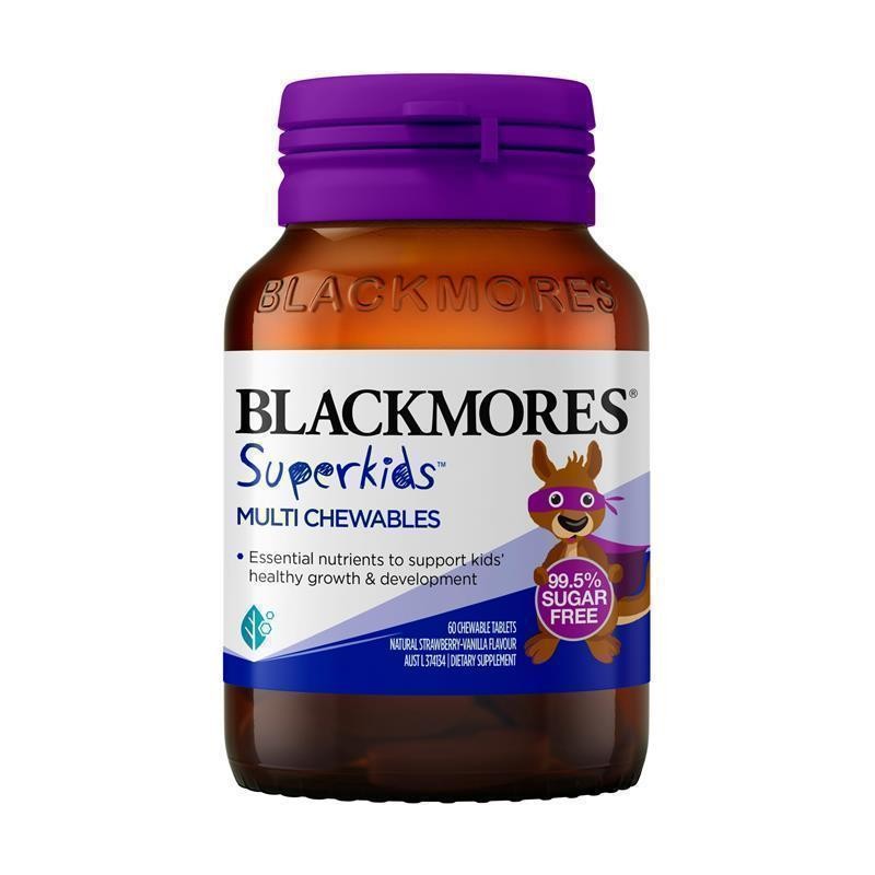 Blackmores Superkids™ Multi Chewables are a 99.5% sugar-free natural strawberry-vanilla flavour formulation to support kids' healthy growth & development.