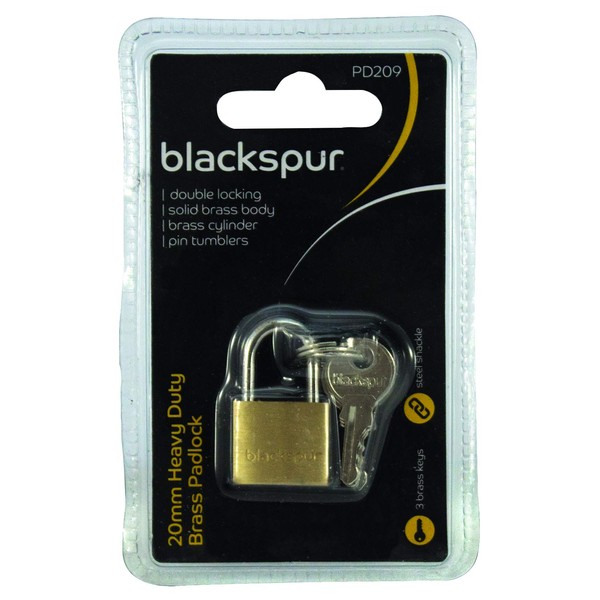 - Blackspur BB-PD209 20MM HEAVY DUTY PADLOCK WITH HARDENED SHACKLE