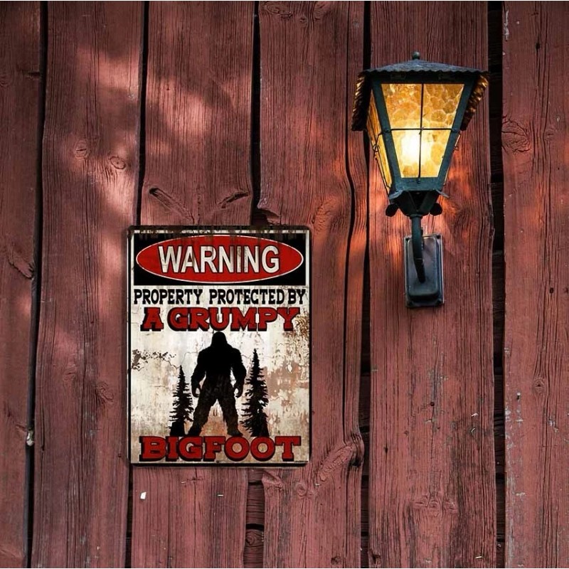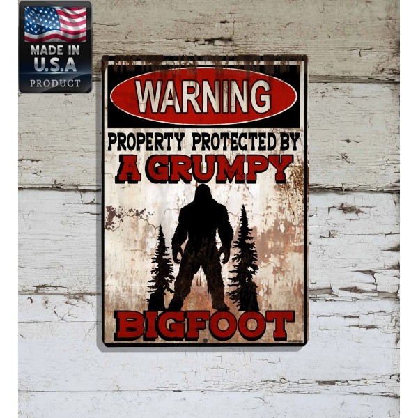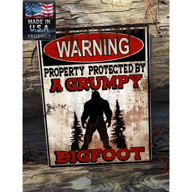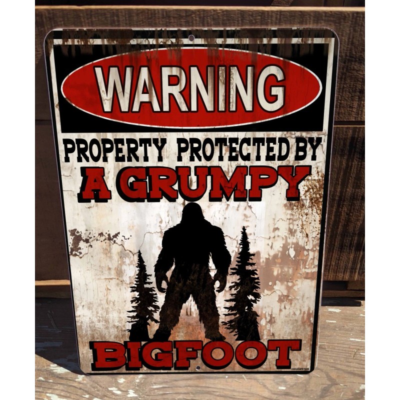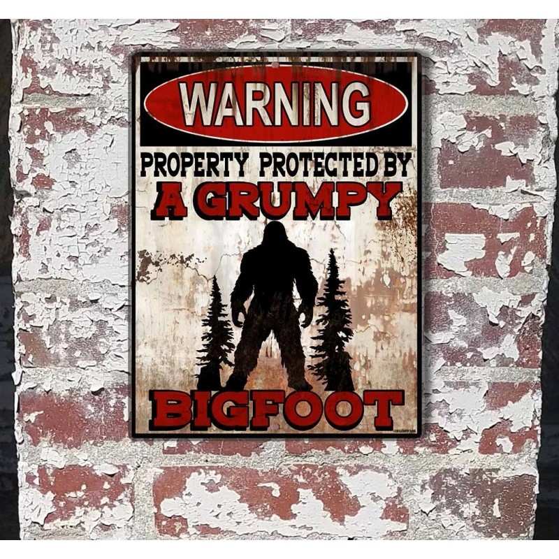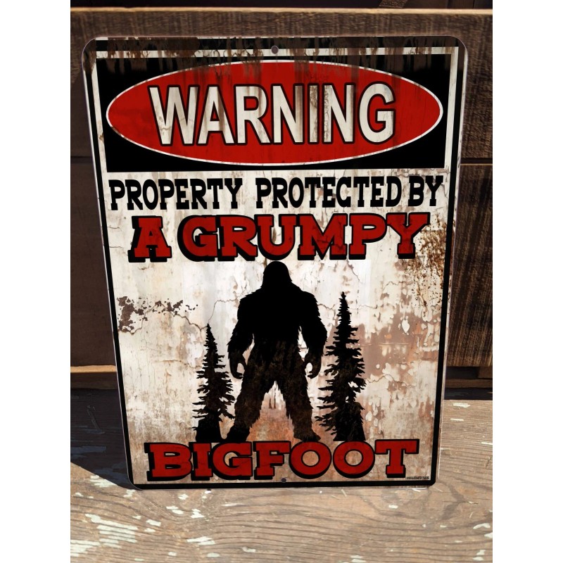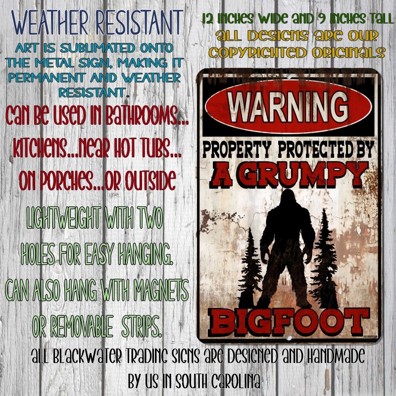 Blackwater Trading Warning Property Protected By A Grumpy Bigfoot 9"x12" Metal Door Cryptid Sign