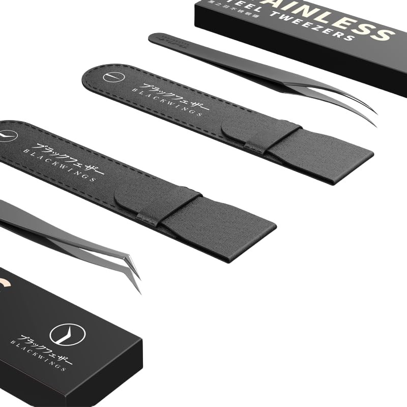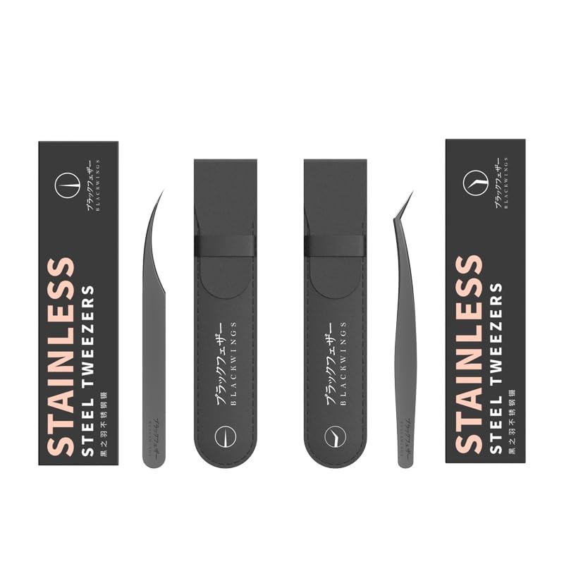 BLACKWINGS 2 Models Stainless Steel Eyelash Tweezers