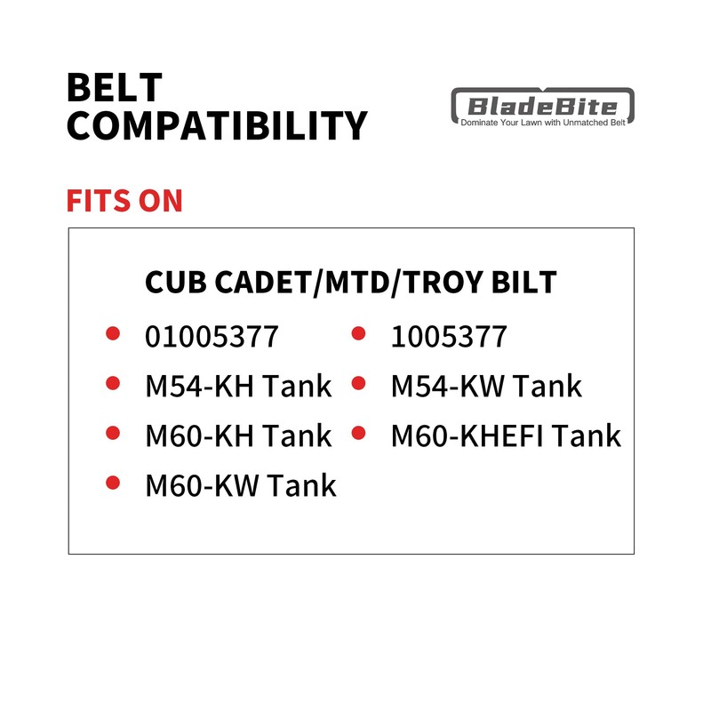 BladeBite Replacement Belt 01005377/ Kevlar Cord / 5/8" x 91.2" - Compatible with MTD Troy BILT CUB Cadet 01005377P 1005377 M54 M60