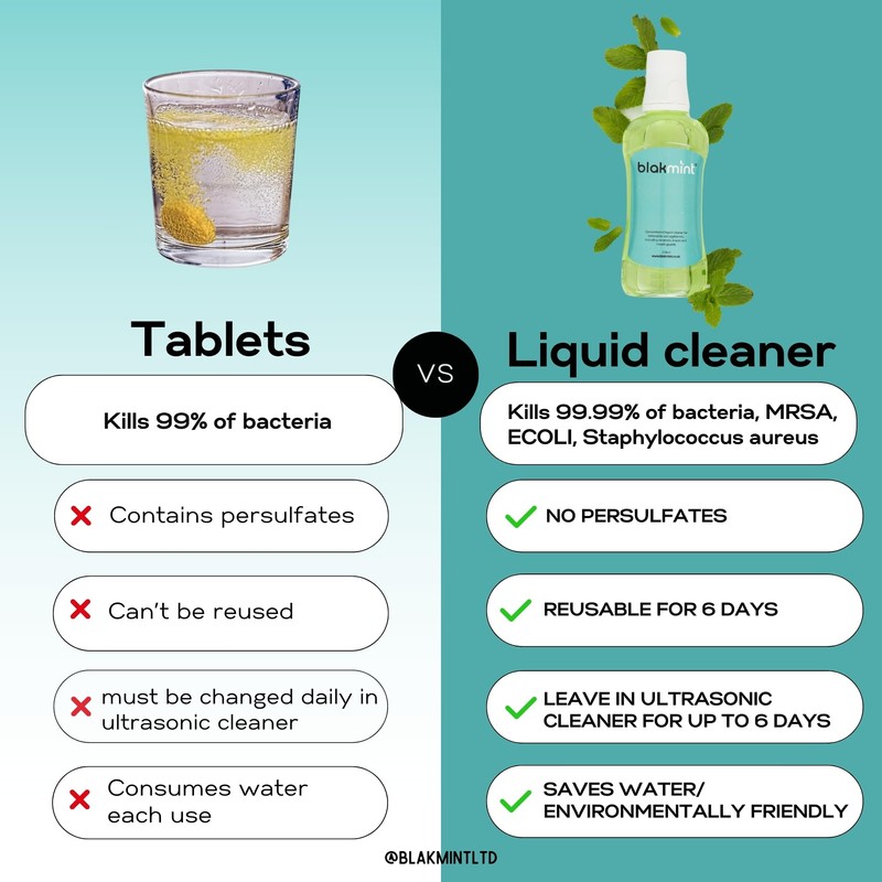 - 🌿 FRESH MINT taste. NO PERSULFATES unlike most retainer cleaner tablets. Safe alternative/No transfer of harsh chemicals into your mouth or irritation.Compatible with Ultrasonic Retainer cleaner.