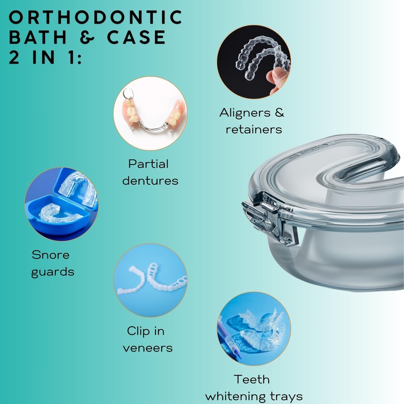 - ⭐ COMPATIBILITY-Our braces cleaning kit can be used to clean & store Aligners|Retainers|Partial Dentures|Whitening Tays|Clip in Veneers|Sleep Apnea Devices.Partial Denture Case to store/clean anywhere