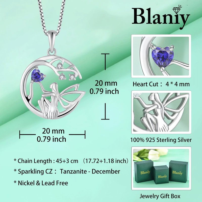 Blaniy Guardian Angel Necklace for Women 925 Sterling Silver Tree of Life Fairy Necklace December Birthstone Pendant Tanzanite Jewelry Gifts for Women