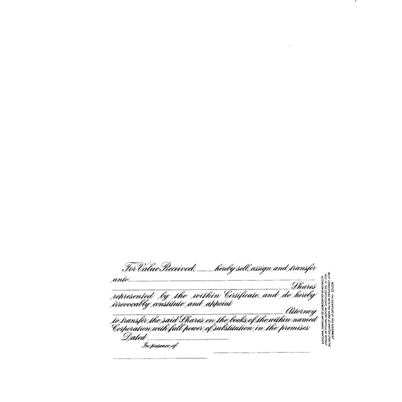 • Contains space for company name, authorized stock structure, delegated shareholder, and date (see Product Description for Custom Printing reference)