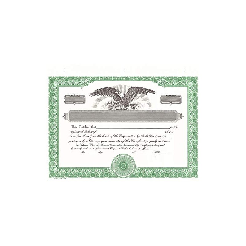 Blank Corporate Stock Certificates, HUBCO, Green, Pack of 15