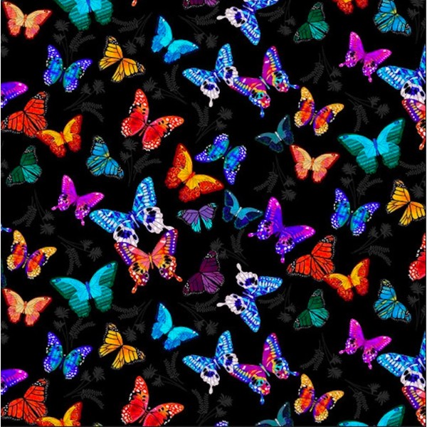 Blank Quilting Mariposa Dance Small Butterfly Black Cotton Fabric By The Yard
