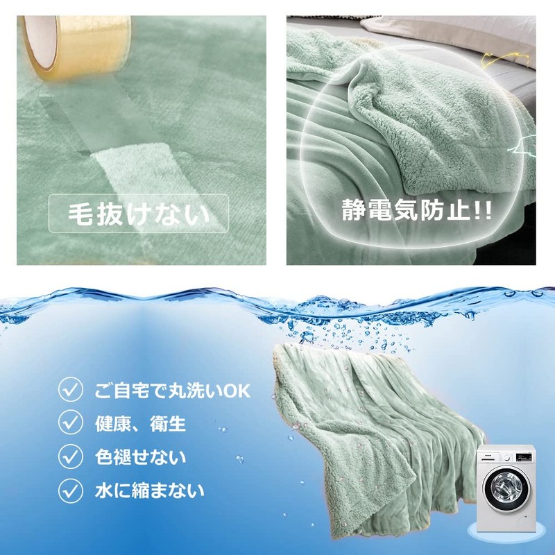 - 3. Features: 1. 2-piece construction that prevents warm air from escaping: A layer of warm air between the 2 blankets provides excellent heat retention. 2. Reversible: The outer material and lining allow you to enjoy two different textures. The microfiber material on the outer surface is soft and smooth. The lining is a "fluffy" sheepboa that wraps around you and enjoys the warmth. (3) Anti-static: With anti-static treatment, it reduces unpleasant static electricity during the winter where air is dried. 4. No shedding, no fading, excellent durability