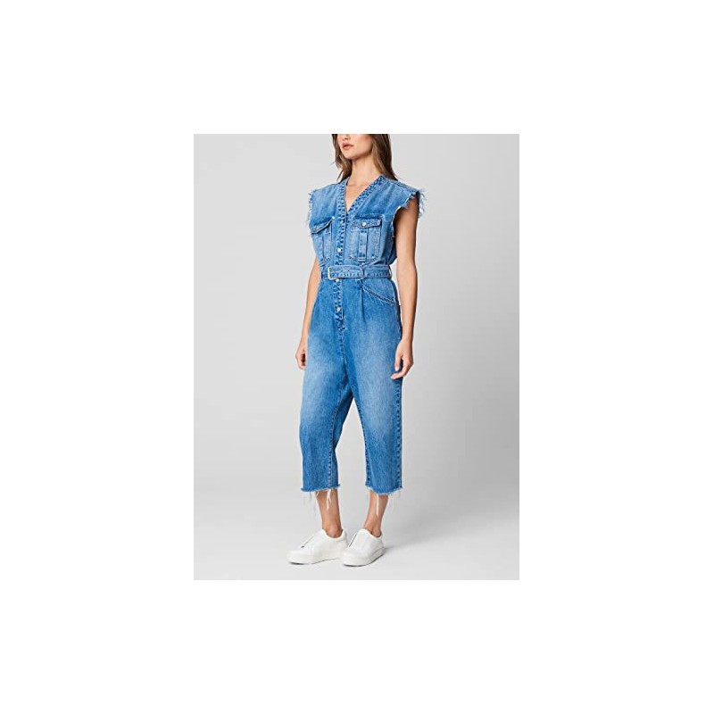 [BLANKNYC] Womens Sleeveless Denim Jumpsuit With Self Belt, Comfortable & Stylish Jumper, Puffed Up, Medium