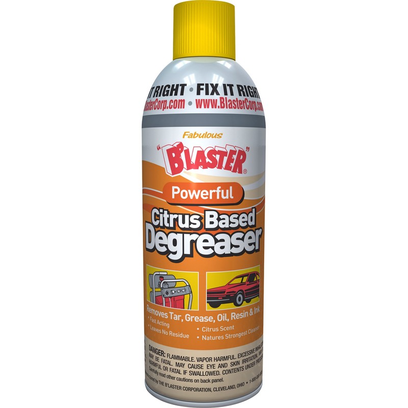 B'laster Citrus Based Degreaser removes tar, grease, oil, resin and adhesive from virtually any surface. As one of B'laster's most versatile products, Citrus Based Degreaser has countless applications. It is fast acting, easy to use by spraying on and wiping off and rinses clean with water.