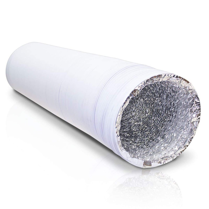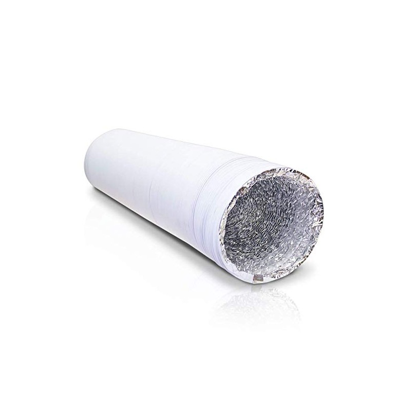 • 4-Layer tough: keep your ventilation system free of rips and pin holes. Under the White PVC layer our ducting is built with 2 layers of aluminium foil with a layer of PET and steel wire helix to preserve the shape.