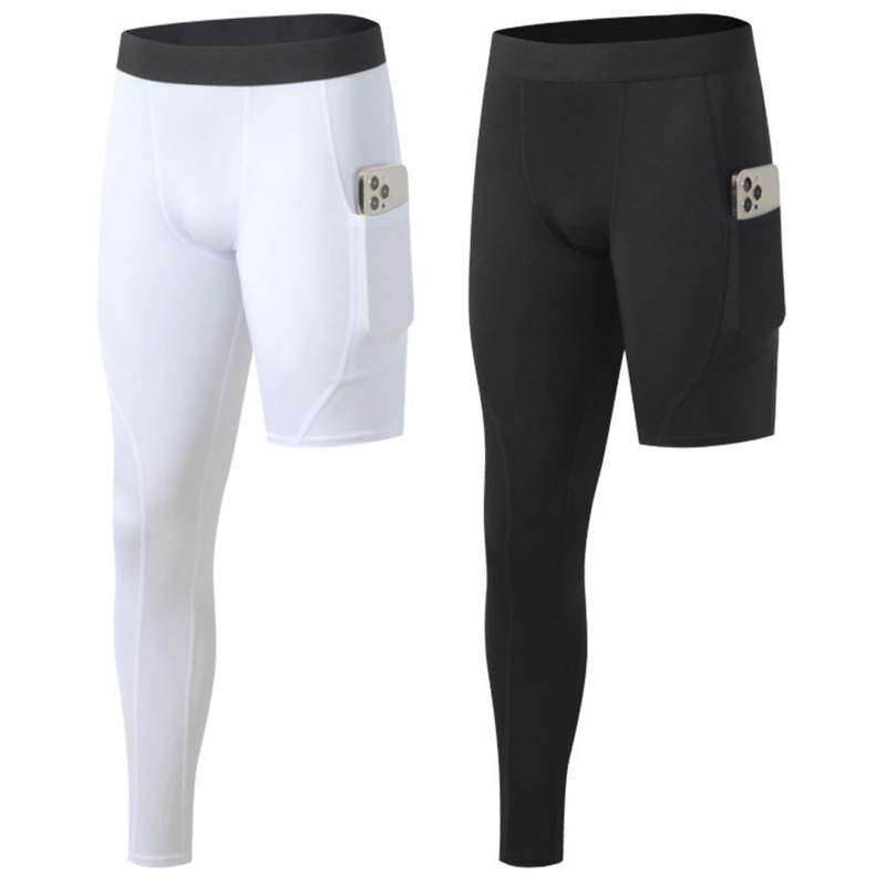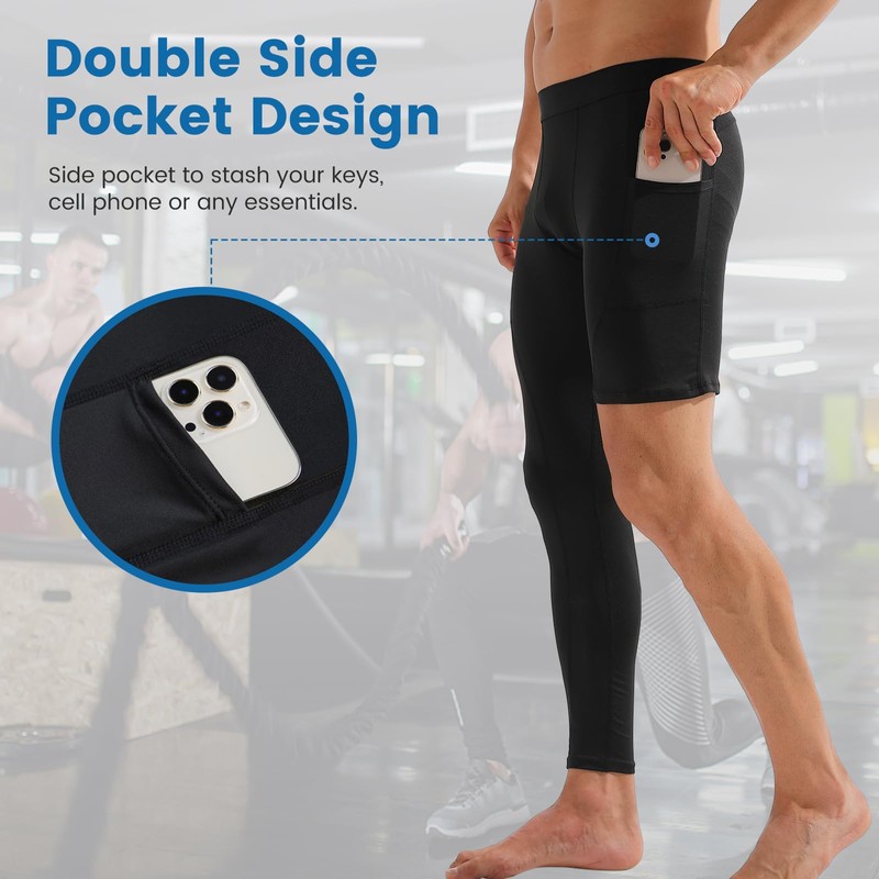 - With Pockets Design - The basketball single leg long pants for men feature two side pockets to stash your keys, cell phone or any essentials. which provide great convenience. The leggings with elastic waistband, strong and does not irritate the skin, sports gym spandex baselayer.