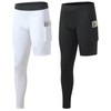 Blaward 2 Pack Men's Compression Pants Single Leg Tight Sports Long Pants with Pockets for Basketball Base Layer Leggings (US, Alpha, XX-Large, Regular, Regular, Black+White+Right Long)