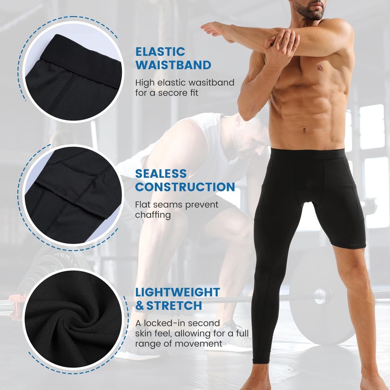 - Package Contains - You will receive 2 packs of one leg compression tights full length for men in each package, which is convenient for you to replace using, and satisfy your daily exercising and training needs, also you can send them as gifts. Such as a Halloween gift, Christmas gift, Valentine's Day gift, Father's Day gift, birthday gifts.
