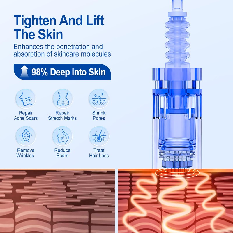 - Easy to use: Easily replaceable cartridges for an uninterrupted microneedling routine.