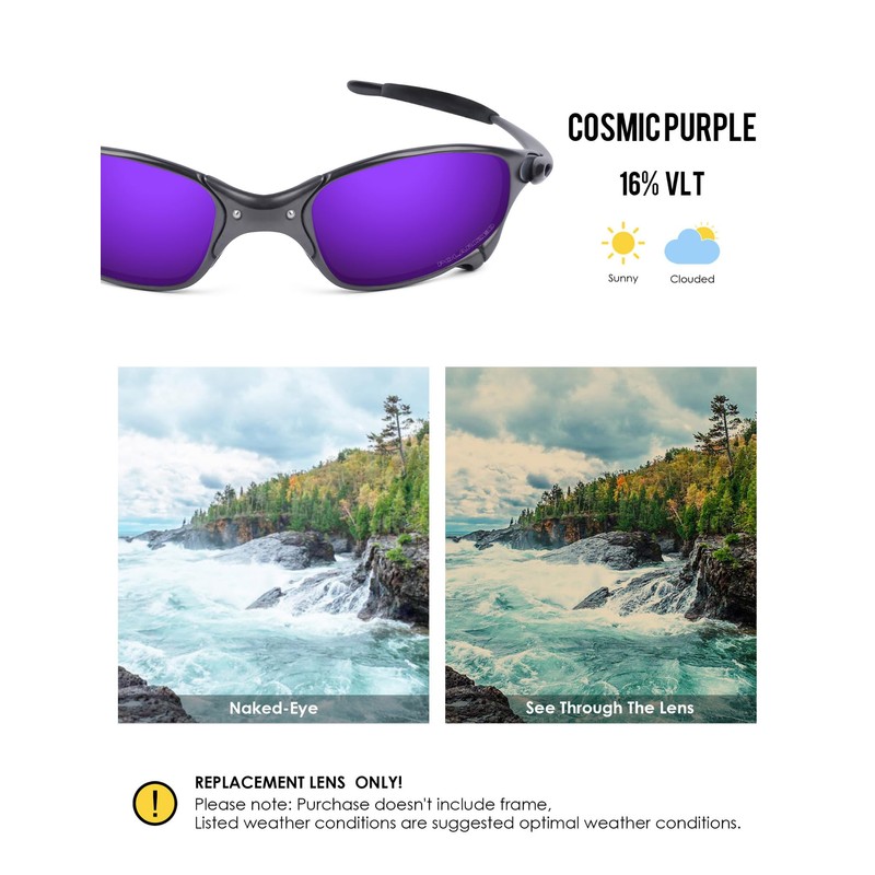 BlazerBuck Anti-salt polarised replacement lenses for Oakley Juliet, Cosmic Purple Polarized