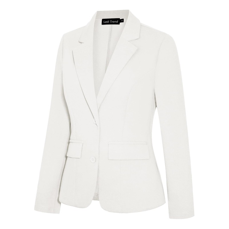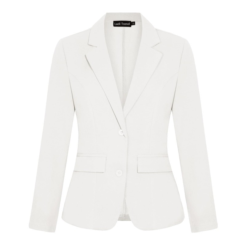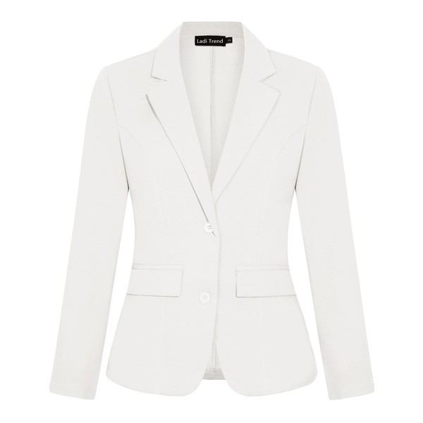 Blazers for Women Two Button Notched Lapel Blazer Jacket Long Sleeve Suit Jacket with Pockets for Daily/Work(White 2XL)