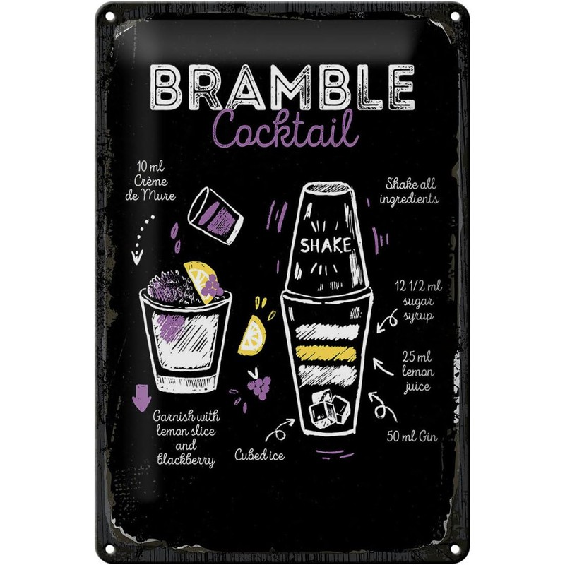 Blechschild 30 x 20 cm Bramble Cocktail Recipe - DekoNo7