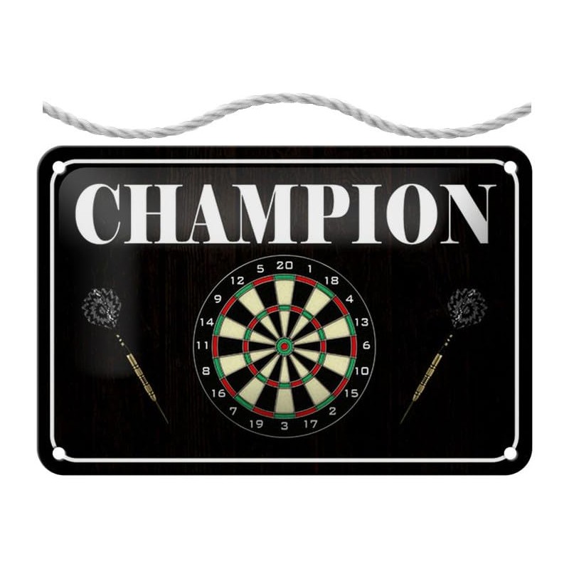 Blechschild mit Kordel 18 x 12 cm Dart Schild: Darts Champion - Blechemma