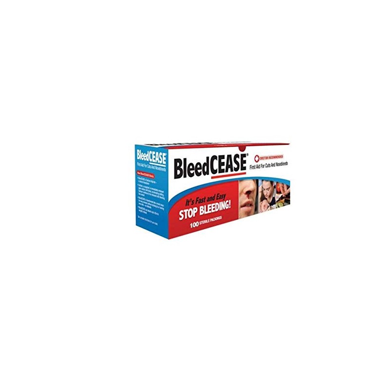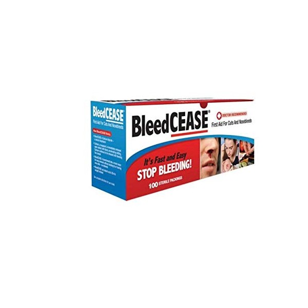 BleedCEASE STERILE PACKINGS BleedCEASE's natural fiber releases calcium, a clotting factor, upon contact with blood. The calcium accelerates the clotting process and continues to be released until the bleeding has stopped. It's effective not only for nosebleeds, but on everyday cuts and scrapes; shaving cuts; puncture wounds; lacerations; and sports injuries, enabling you to return quickly to your activities. For nosebleeds, simply insert a BleedCEASE sterile packing into the bleeding nasal cavity and remove after thirty minutes. For cuts or wounds, place it directly on the bleeding wound and apply pressure with two fingers until bleeding has stopped. The unique fiber of each sterile packing is highly absorbent. Unlike some blood clotting products, BleedCEASE works without stinging or irritating the affected area. The unique fiber of each sterile packing is highly absorbent. BleedCEASE does not stick to or disturb the wound upon removal. New clots are not torn triggering new bleeding. BleedCEASE is the natural based bio-polymer calcium alginate. BleedCEASE has no known side effects or medication contraindications, and is suitable for all ages.