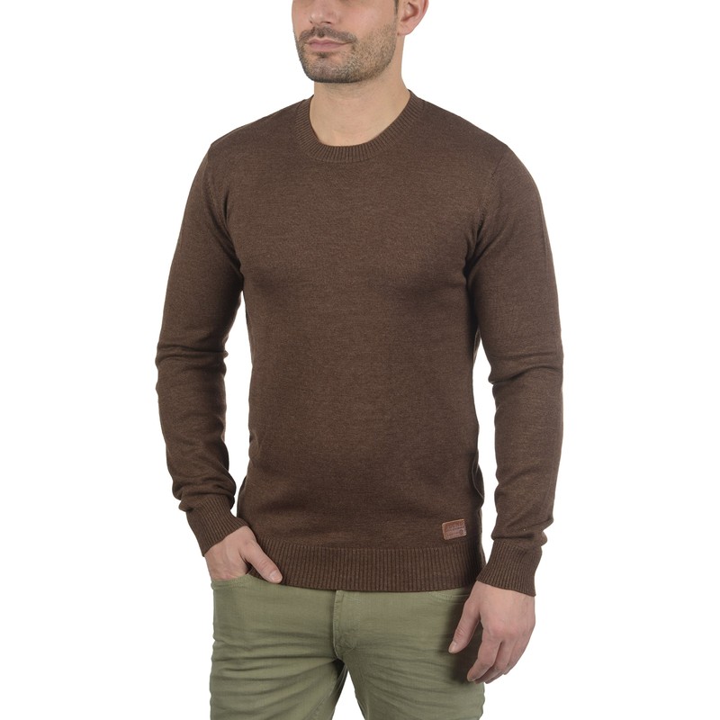 Blend Lars Men's Fine Knit Pullover with Crew Neck and Mottling - Coffee (mocha mix (70816)) Plain, size: l