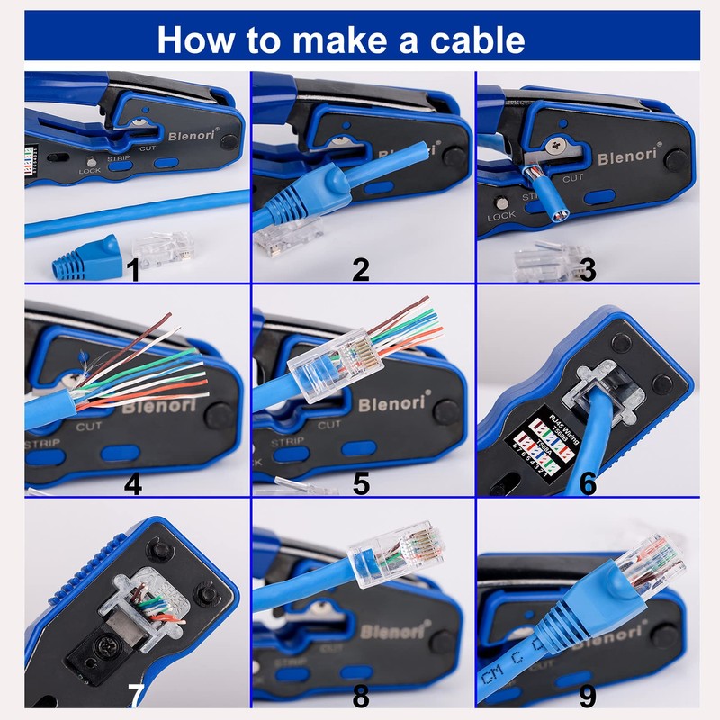 - RJ45 Pass Through Crimp Tool - The set includes a rj45 crimp tool, a set of replacement b/la//de, a mini wire stripper, and a instruction that getting the operation ways and correct color wires order quickly while crimping.