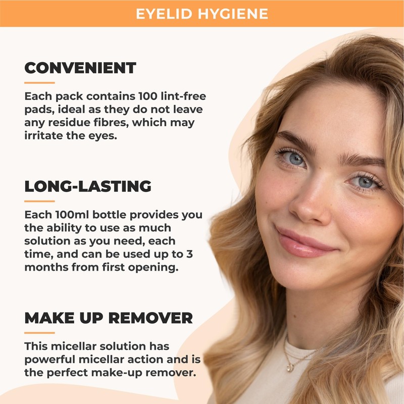 - CONVENIENT – each pack contains 100 lint-free pads. These are ideal for use around the eyes, as they do not leave any residue fibres, which can irritate the eyes.