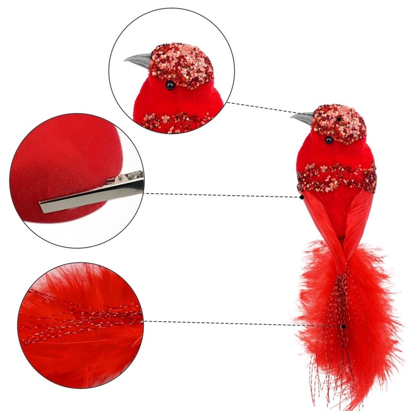 - 【PACKAGE INCLUDES】- Each package contains 6 Christmas birds artificial, these tree bird cardinals is carefully crafted, and the feathers are lifelike, embellished with delicate sparkling sequins, looking like a real bird.