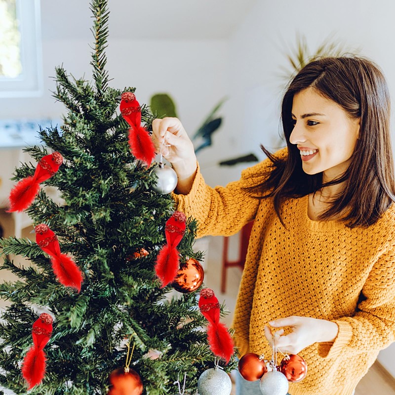 - 【LIGHTWEIGHT & DURABLE MATERIAL】- Our cardinals xmas ornament are made of feathers, foam, wooden sticks and metal clips. The weight will not be too heavy on the Christmas tree branches. Family and children can participate in the Christmas tree dressing activities.
