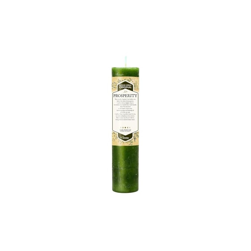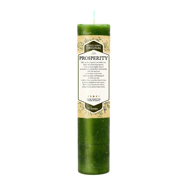 Made When The Moon Is Right Old World Wisdom and Folklore Old World Wisdom Blended with Today's Needs to Create Your Own Magic! Blessed Herbal Candles are created with herbs, oils and related colors to help achieve your dreams. Each candle includes a beautiful uplifting blessing and message. Each candle measures 1½" x 7½" with a 40 hour burn time and safe cotton wicking. Purpose: Prosperity Scent: Bergamot & Clove Color: Green Quote from the creators of these magickal candles: "We tapped into the ancient mystical secrets of herbal magic and by all of our customer's accounts, IT WORKS! Making herbal candles is something we take very seriously. Starting with purposeful recipes and high quality materials, we add in the magic of personal blessings while hand pouring them during the phase of the moon that will best intensify their energy. The styles available address any need one may encounter in their travels through life. These beautiful candles have an old-world hand made look."