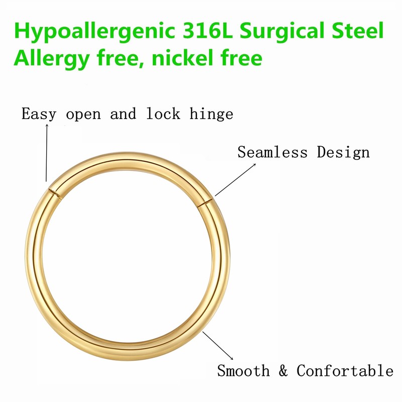 BLESSMYLOVE Nose Ring 316L, Surgical Steel, Cartilage Earring, Septum, Clicker, 0.8/1.0/1.2/1.6/2.0 mm, Folding Segment Ring, Lip Ring, Conch, Daith, Helix, Rook, Tragus, Lobe, Snug Ear, Body
