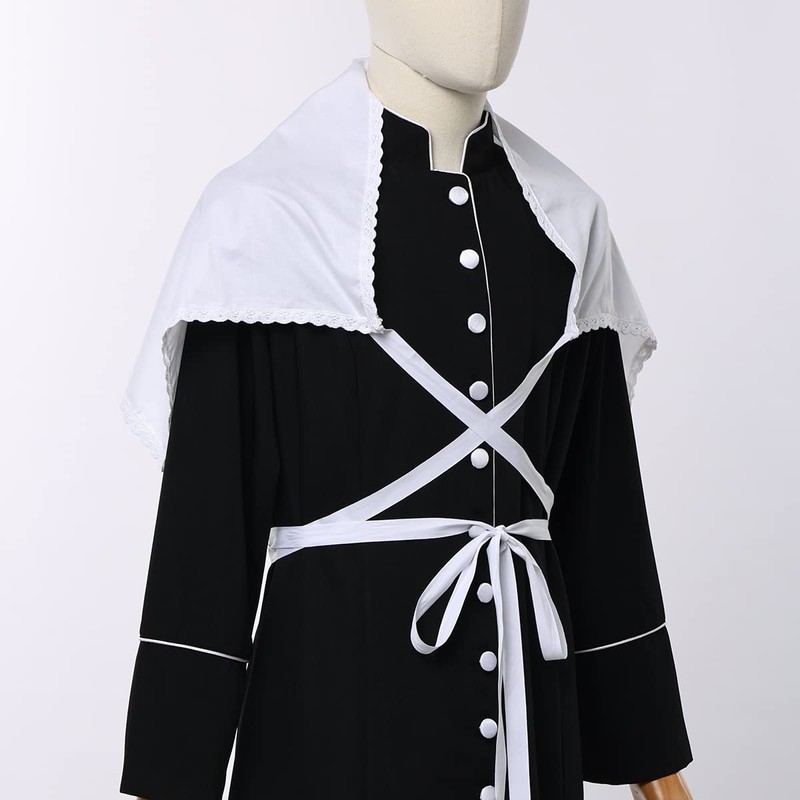 (Tying Ribbon for One Side is about 220cm/86.5" long.) - The amice is the free tying type, just pull the ribbons/cords around your torso and tie them in the front.