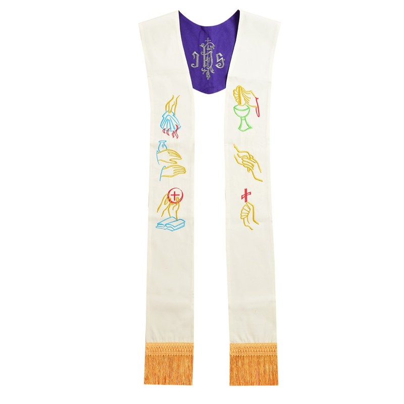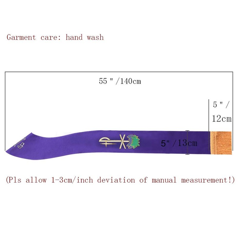 Three-dimensional embroidery Brand-new with High Quality A must have for Catholic adoptionist! Style: Reversible Embroidered stole Size: about 140*13cm(fit for one with the height of 160-180cm) (Pls allow 1-3cm deviation of manual measurement!) Garment Care: Hand Washable