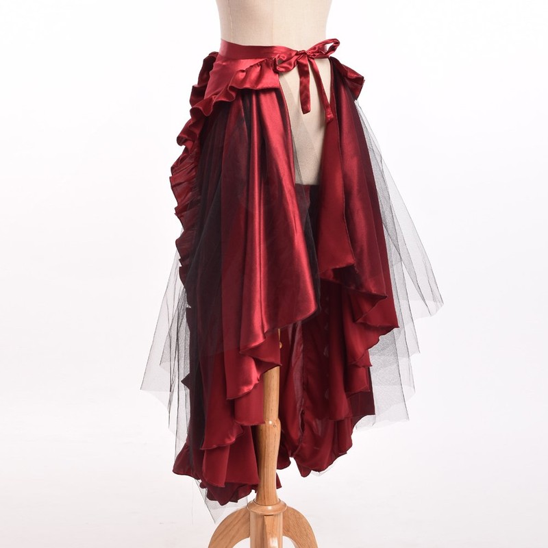 BLESSUME Victorian Ruffle Bustle Skirt/Cape (Red)