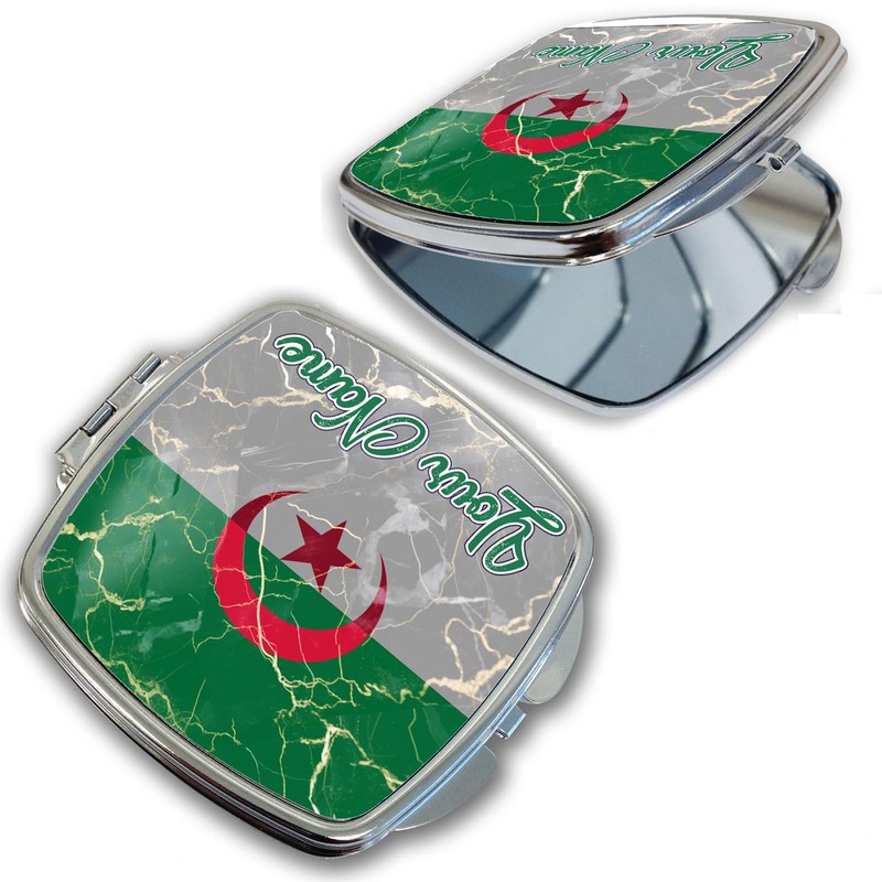 Bleu Reign Compact Personalized Pocket Mirror Custom Name Algeria Flag Marble Monogram