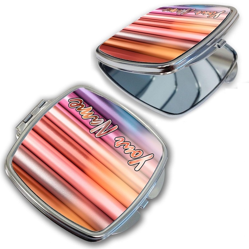 Bleu Reign Compact Personalized Pocket Mirror Custom Name Gradients Pattern Design Metallic Shine Rolls