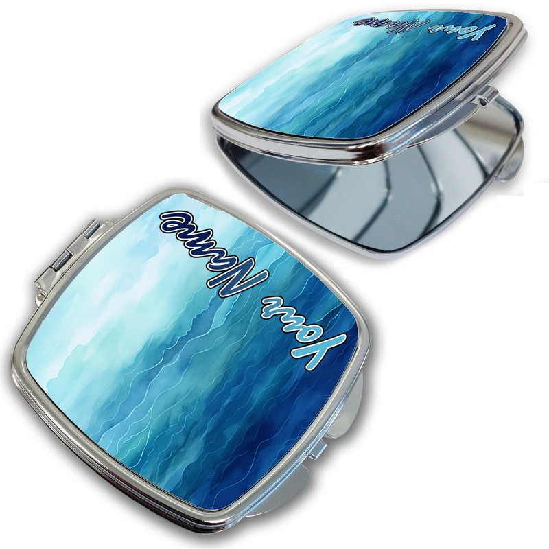 Bleu Reign Compact Personalized Pocket Mirror Custom Name Gradients Pattern Design Oceanic Blues