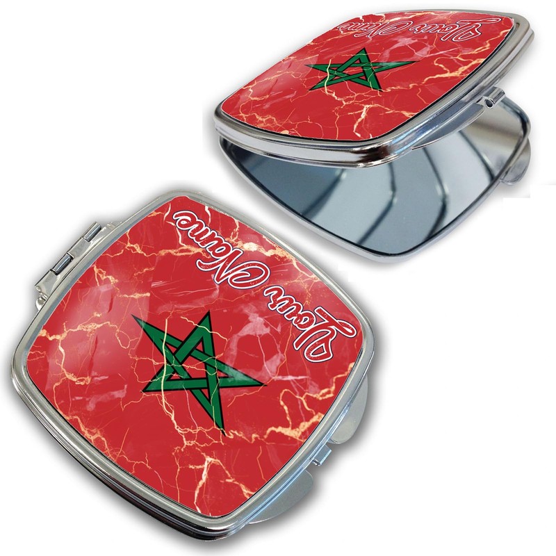 Bleu Reign Compact Personalized Pocket Mirror Custom Name Morocco Flag Marble Monogram