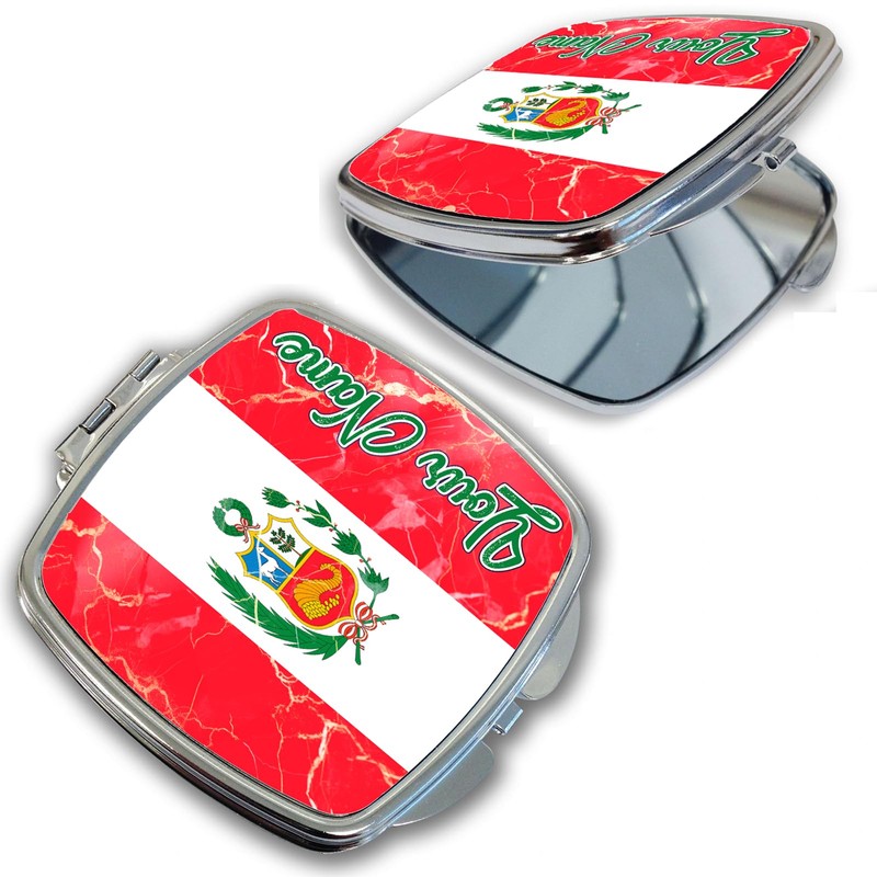 Bleu Reign Compact Personalized Pocket Mirror Custom Name Peru Flag Marble Mo...