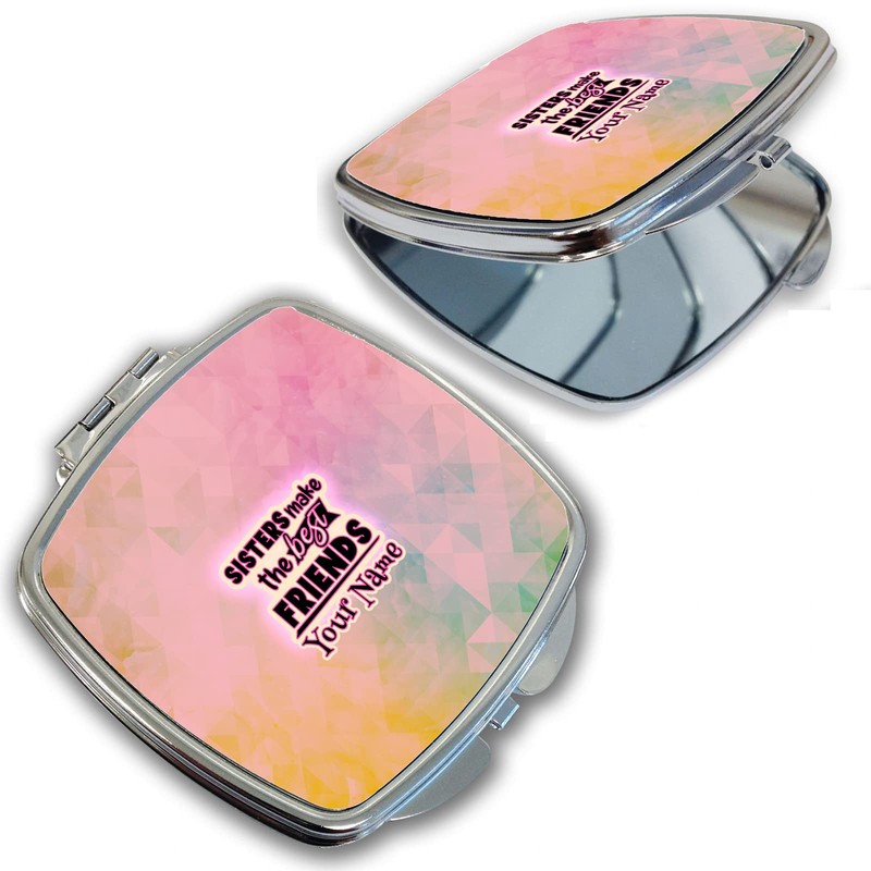 Bleu Reign Compact Personalized Pocket Mirror Custom Name Pink and Orange Sisters Make The Best Friends